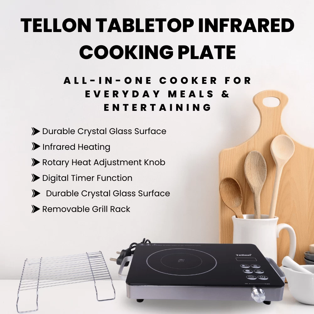 Infrared Heating Technology: Delivers consistent radiant heat that works with all types of cookware — glass, ceramic, steel, aluminum, and more.